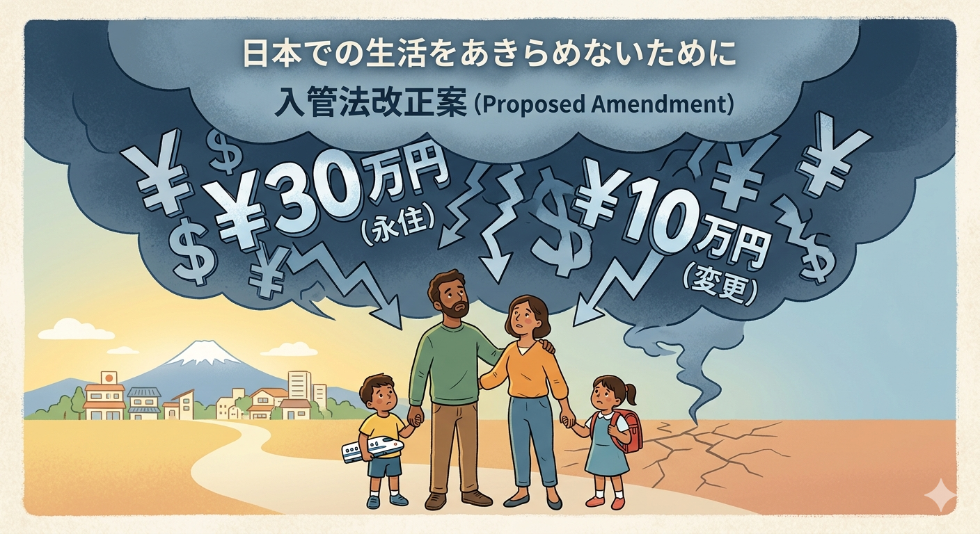 特にご家族で日本に定着しようとしている方がたにとって、この負担は日本に在住することをあきらめるという選択肢につながりかねません。生活困窮を理由に更新を諦めさせることは、不法滞在外国人を増やすことにもつながります。